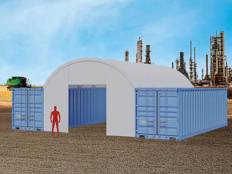 Copertinele din prelată pentru containere oferă protecție împotriva intemperiilor pentru materiale, utilaje de construcții sau vehicule. Această soluție de depozitare durabilă și economică poate fi folosită și ca spațiu de lucru acoperit.